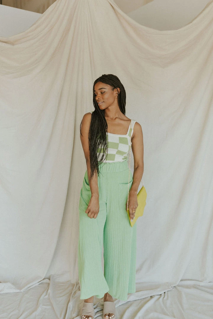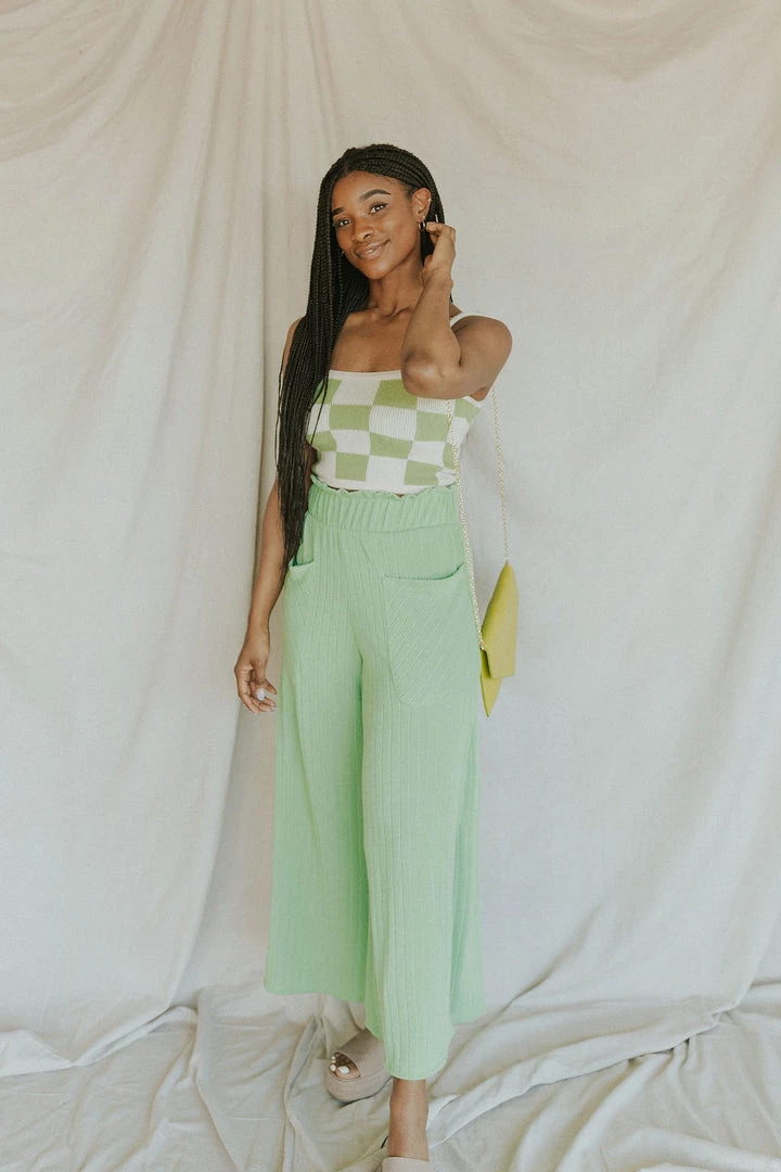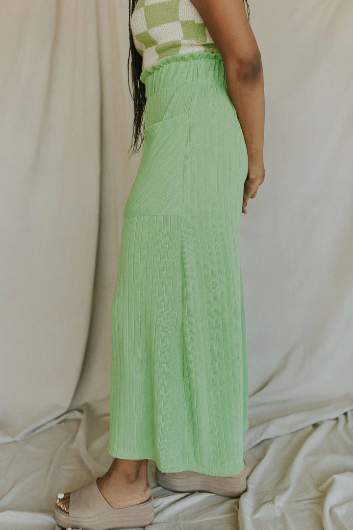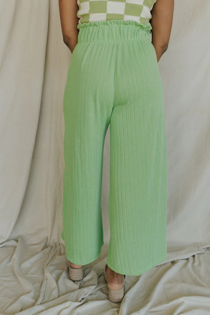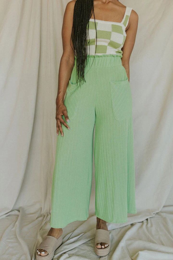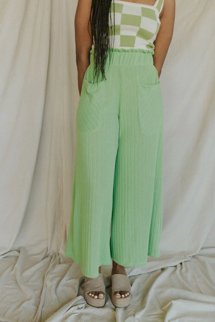 Wide leg ribbed pants. Large elastic paperbag waistband. Large front pockets. Soft with lots of stretch. Available in multiple colors. MADE IN THE USA!!