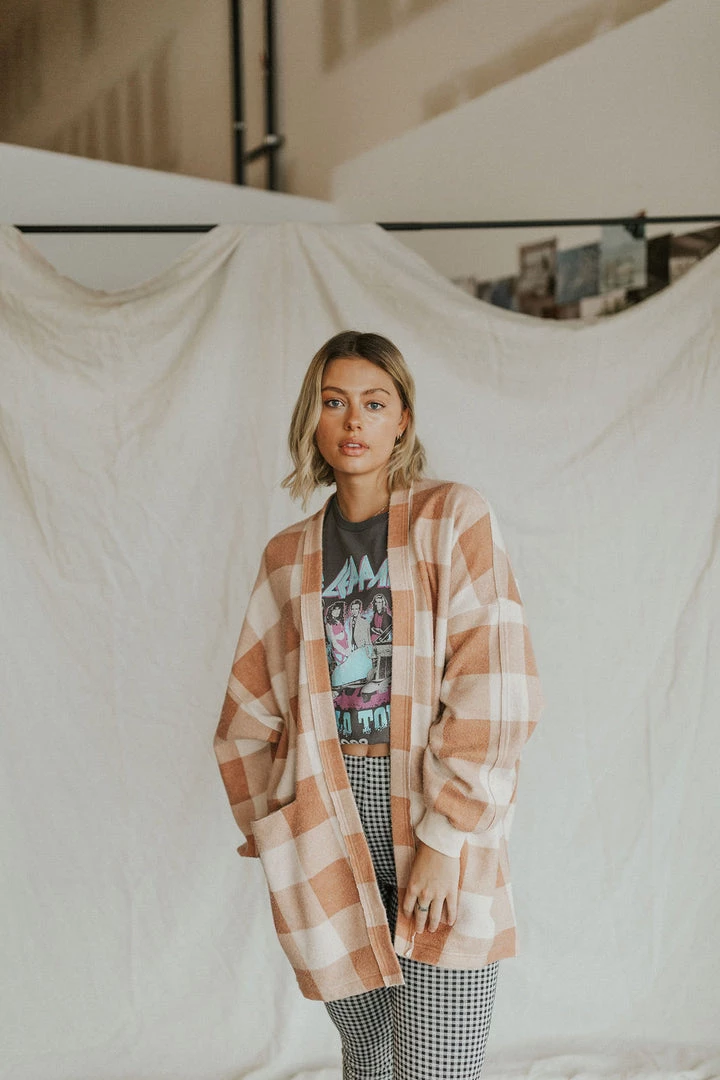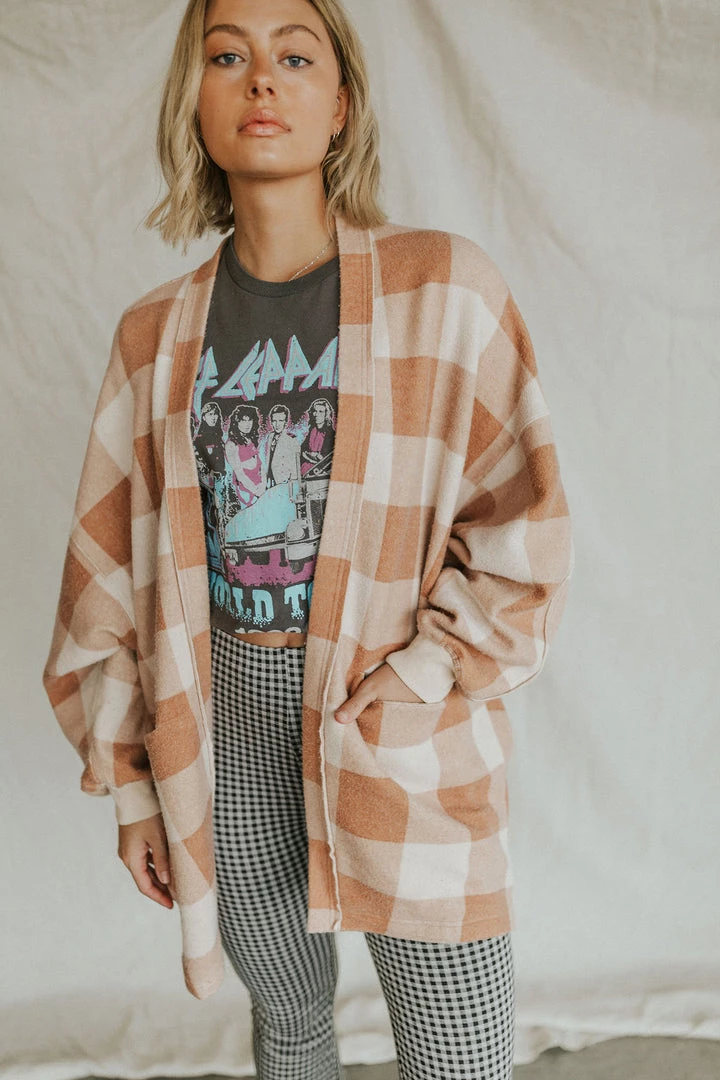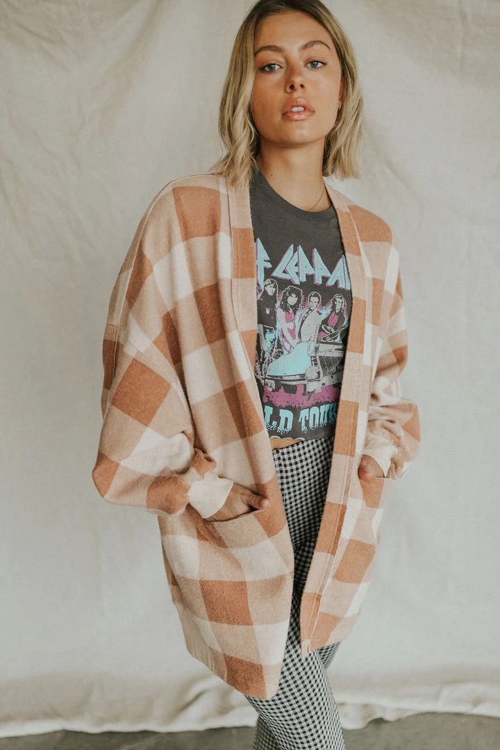 Perfect in plaid, this goes-with-everything cardigan is featured in an oversized, longline silhouette with dropped dolman sleeves for an added slouchy shape.Â