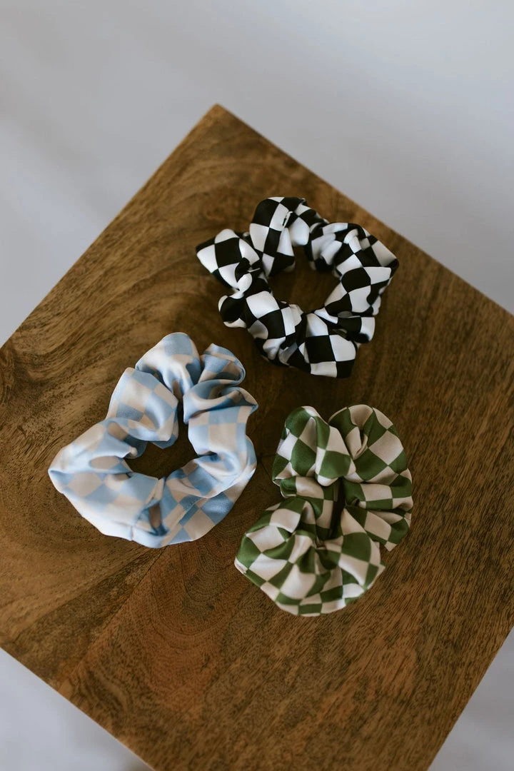 Checkerboard scrunchies. Available in multiple colors. Set of 3 includes one of each color.
