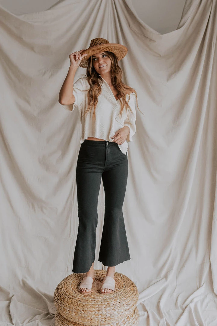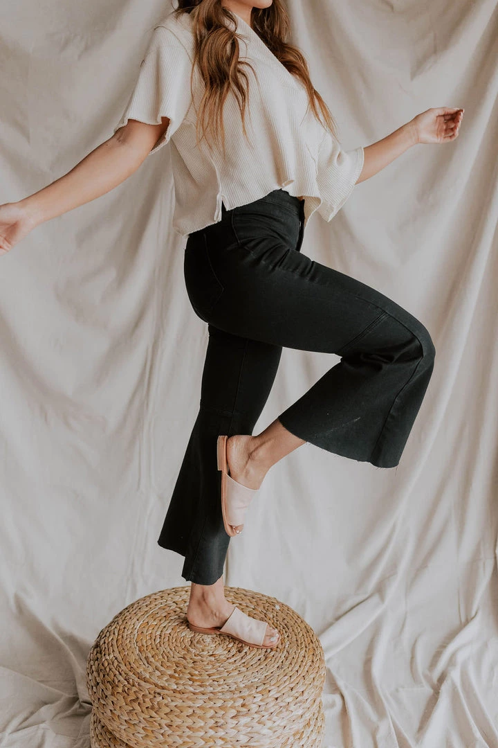 A cropped version of our best-selling Just Float On Flares, these staple jeans from our We The Free collection feature a high-rise silhouette that’s slim through the thigh and flares out for a perfectly cropped, retro-inspired style. MSRP $78