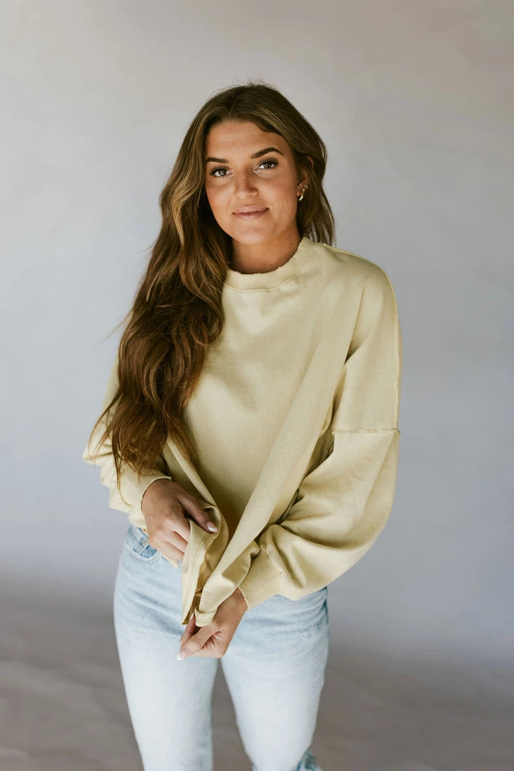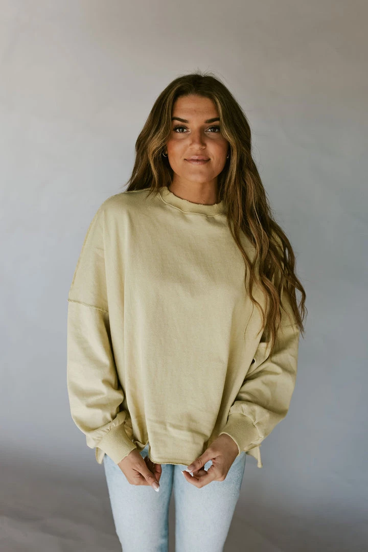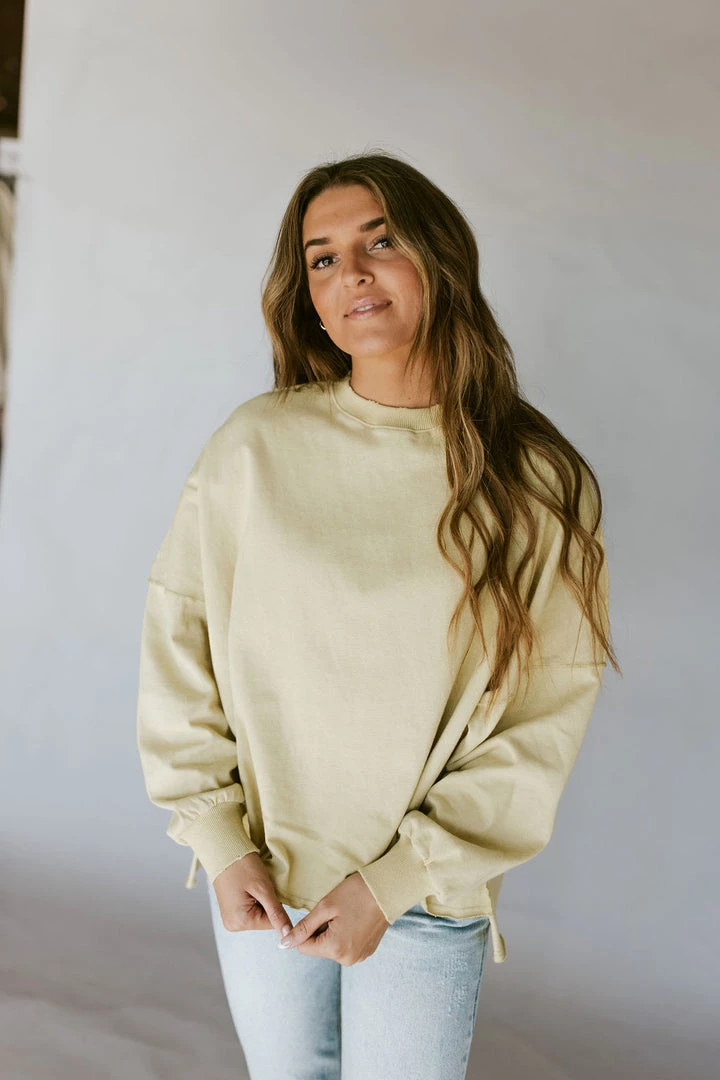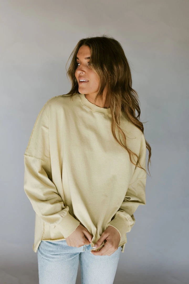 Oversize sweatshirt . Surged hem detail. Ribbed hems and underarm detail. Soft washed look and feel. Available in multiple colors.