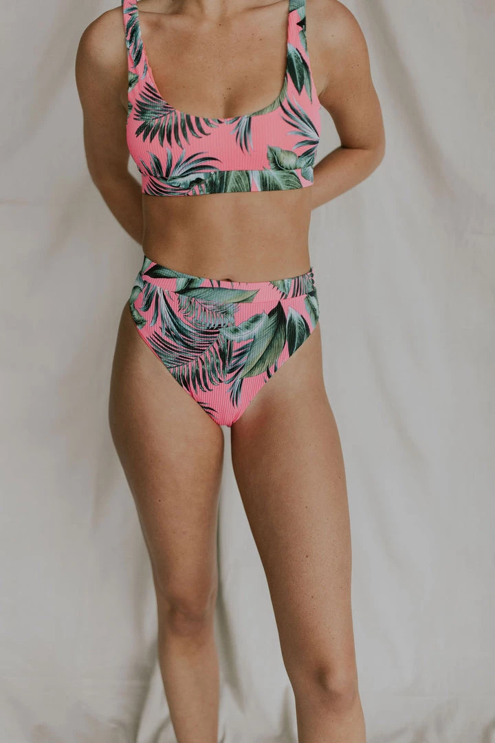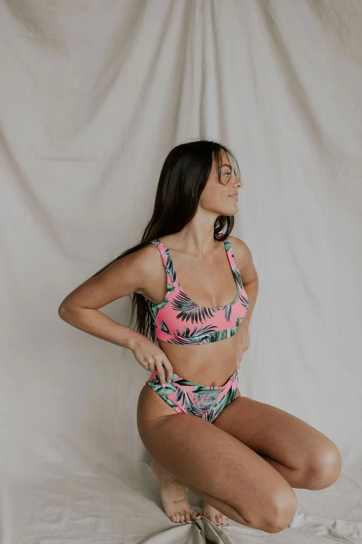 Black tropical leaf bikini TOP. Ribbed fabric with lots of stretch. Fully lined. Pullover bikini top. Pair with the Tropical Bottom.