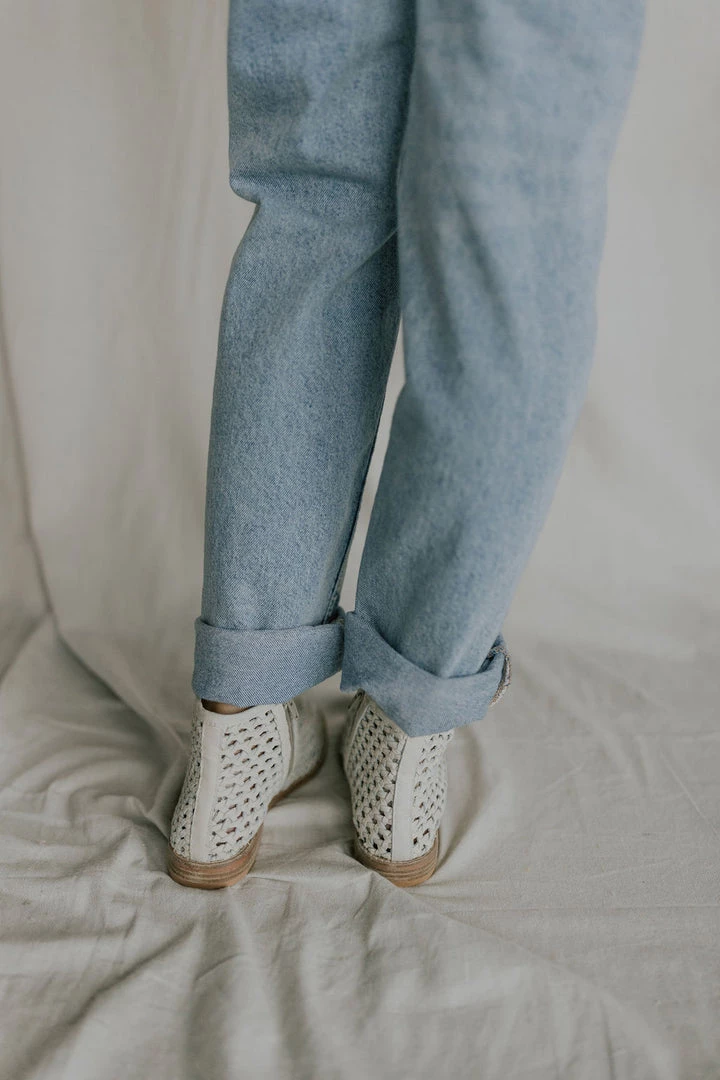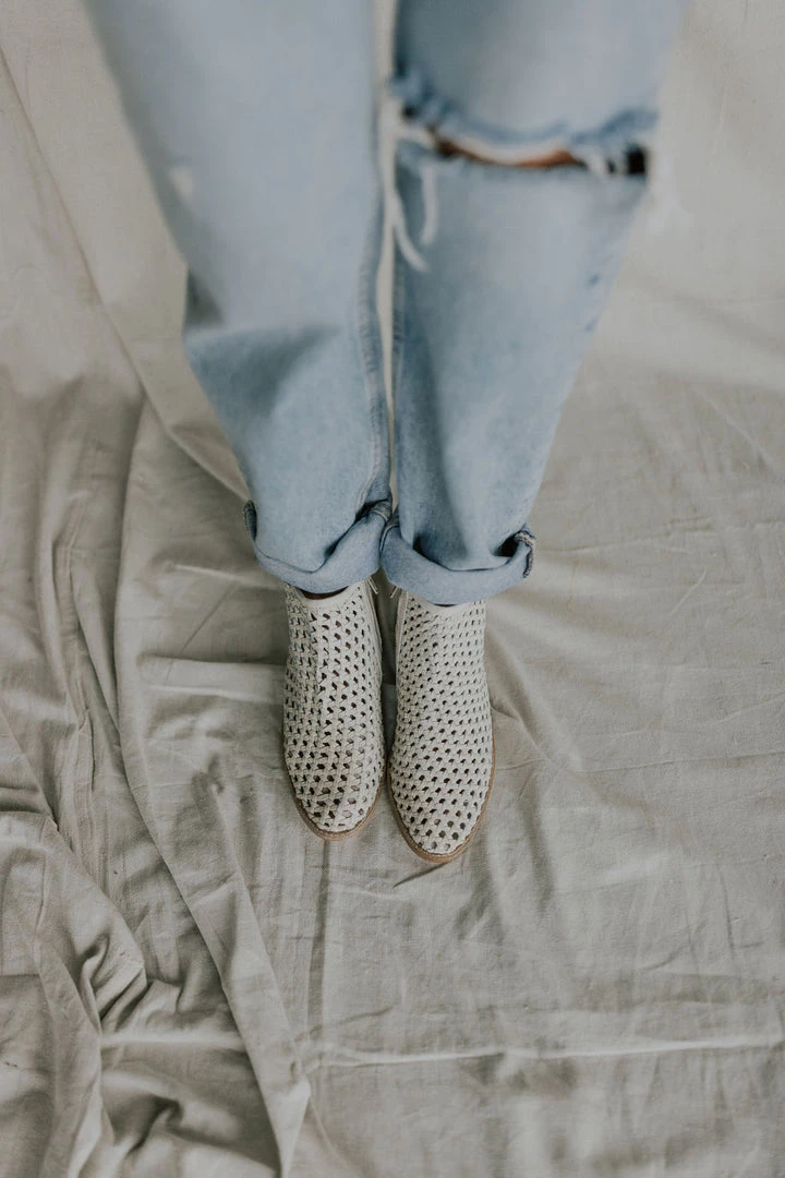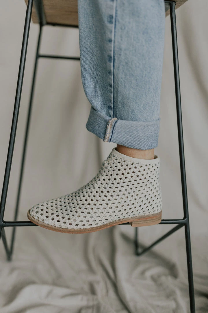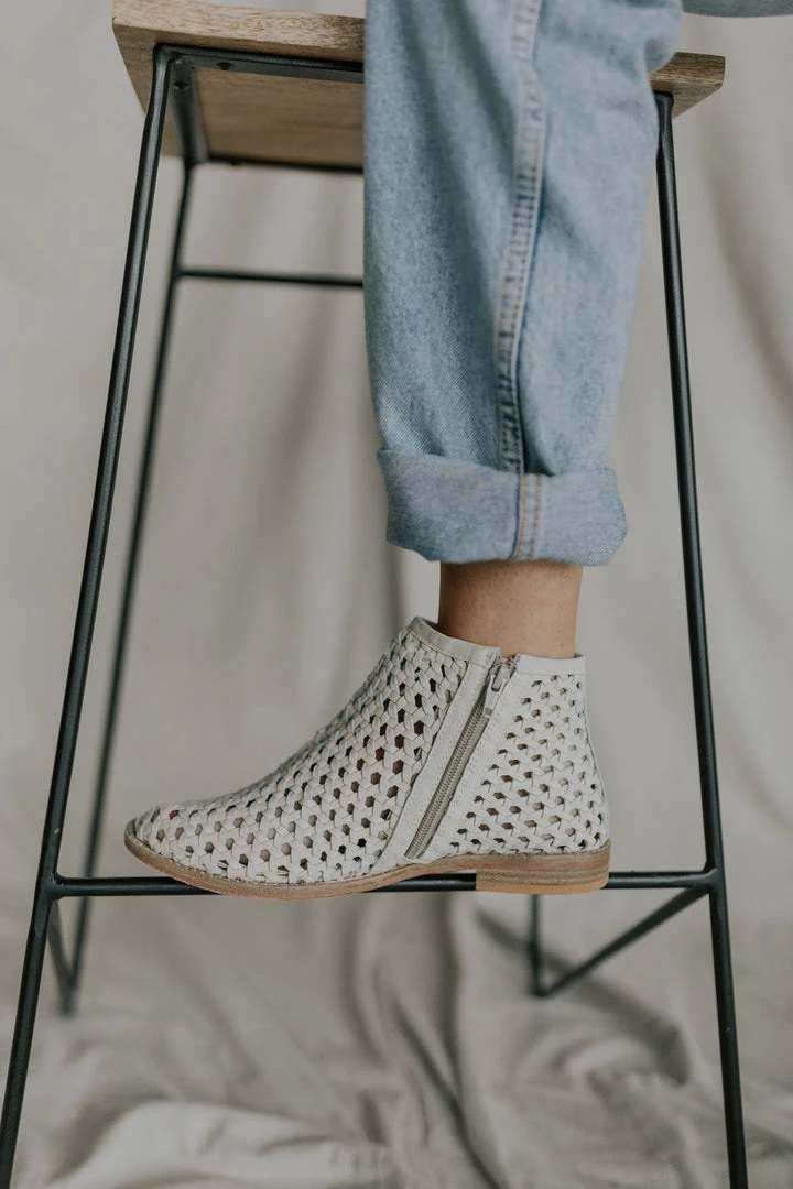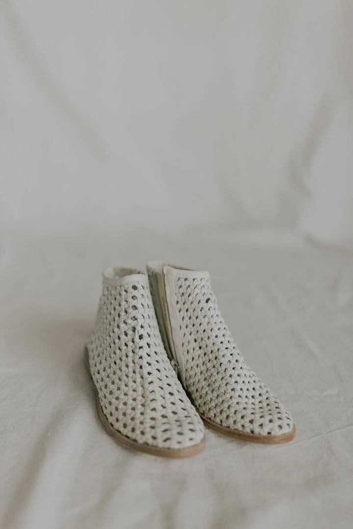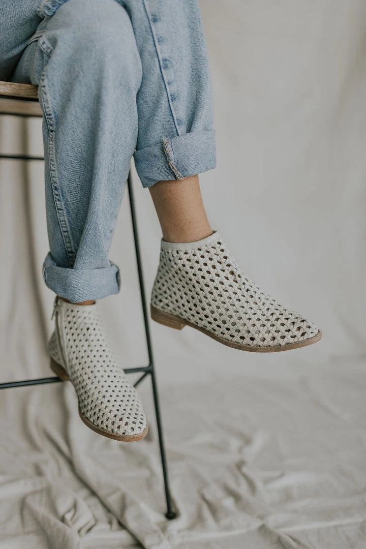 Give your shoe collection a refresh with these effortlessly cool and breathable boots featured in an ankle-style and buttery soft leather with woven details allover, a side zip closure, and subtle pointed toe. MSRP $148