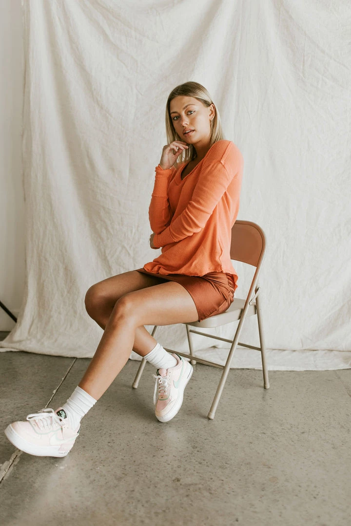 So cool and classic, this essential long sleeve tee from our We The Free collection is featured in an oversized, slouchy silhouette with scoop neckline and exposed, raw seaming for a true lived-in look. MSRP $68