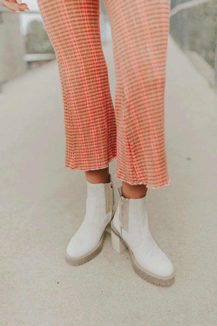 Free People genuine ivory leather Chelsea boot with soft elastic and zip. Block rubber heel 3.5″. MSRP $178