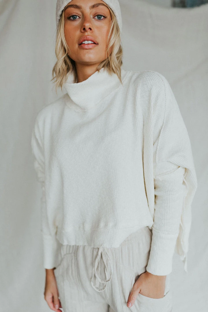 Add effortless edge to any look with this so cool and slouchy pullover featuring mock neckline and exposed seaming throughout for added dimension. MSRP $78