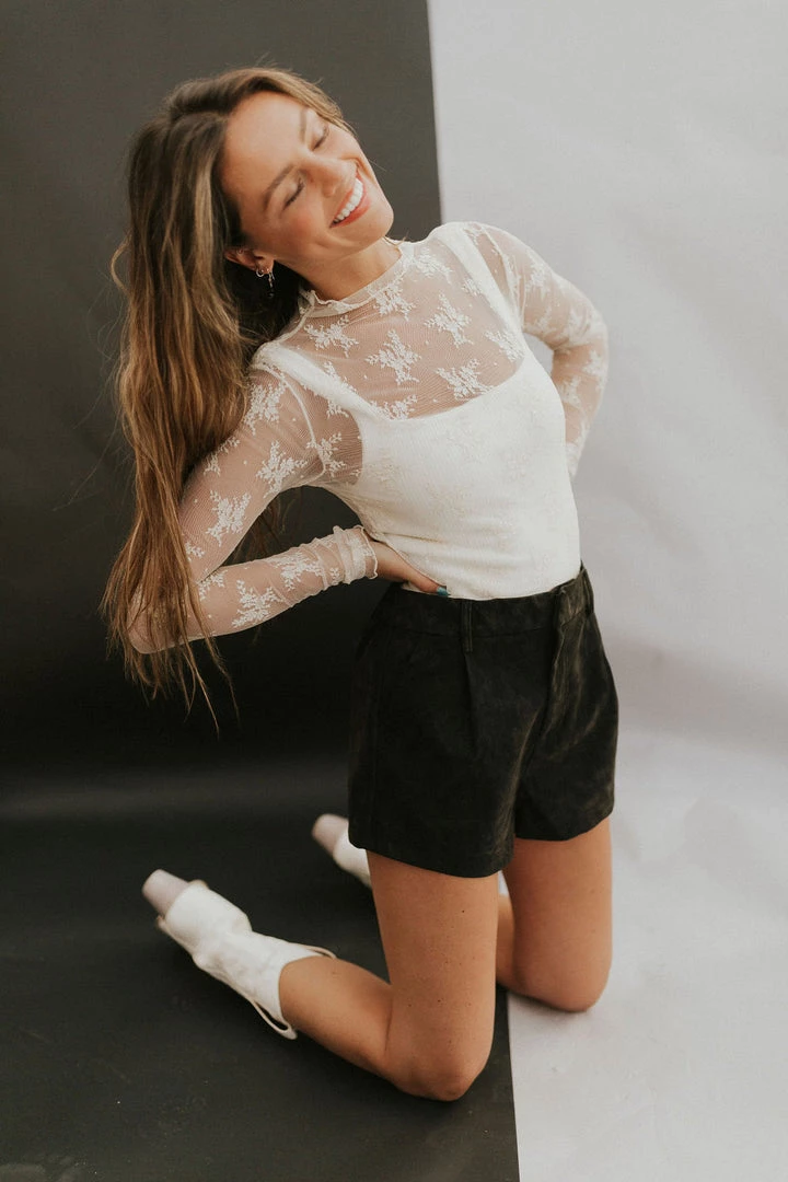 Effortlessly edgy in a vegan suede fabrication, these need-now shorts are featured in a high-rise, relaxed silhouette with front pleated detailing for the perfect style from season to season.