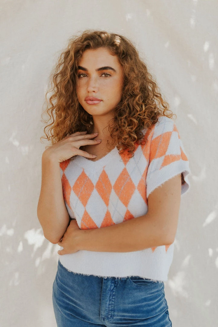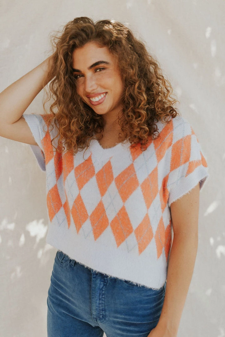 So cool and classic in a timeless checkered design, this essential sweater vest is featured in a staple V-neck, cropped silhouette for added versatility. MSRP $78