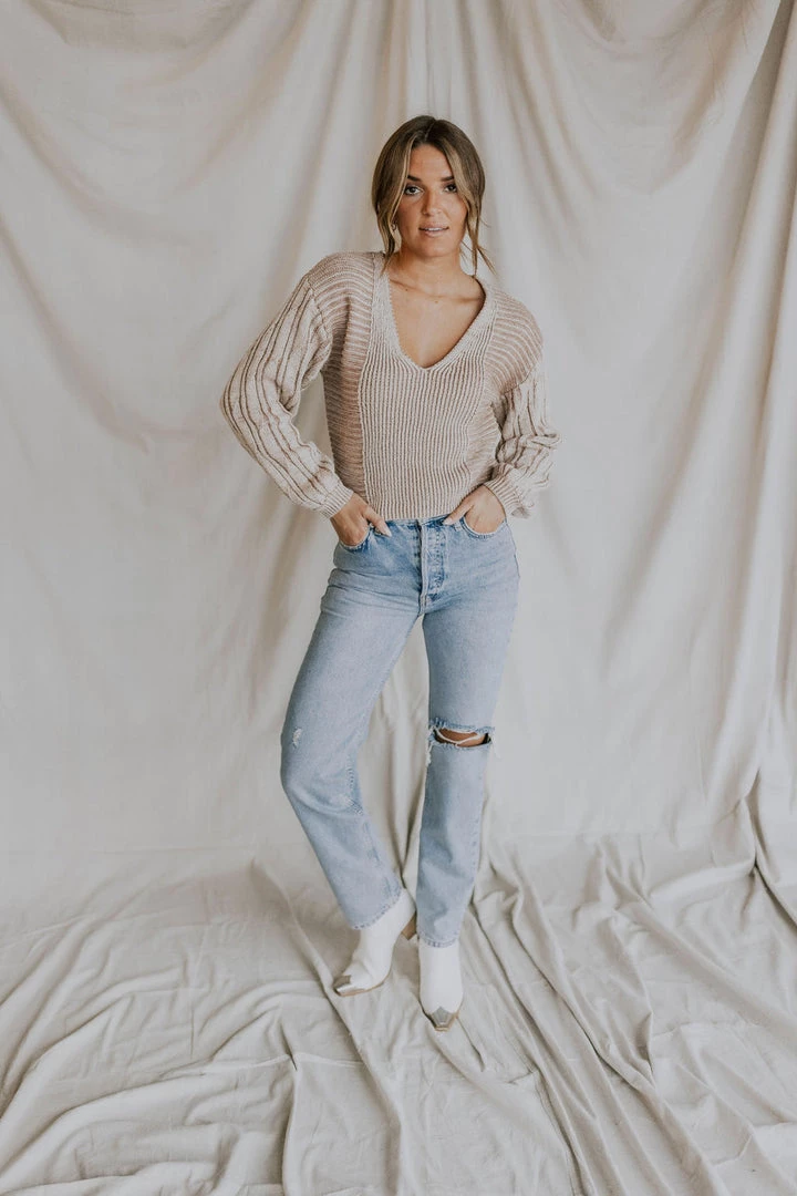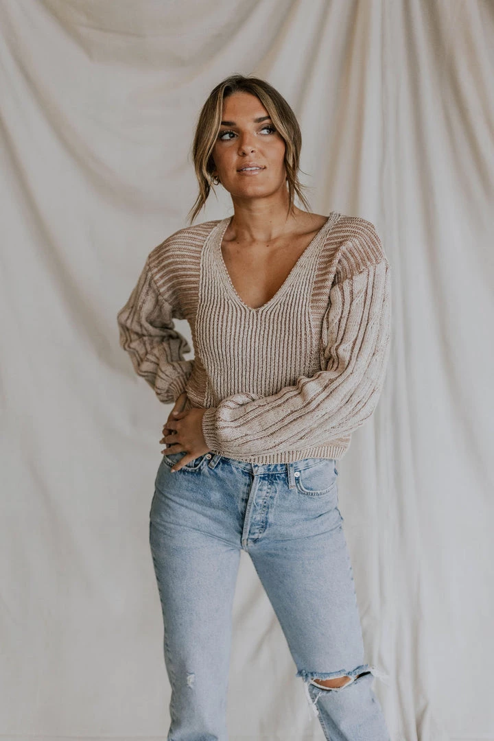 A true goes-with-anything essential, this timeless V-neck pullover is featured in a slouchy, cropped silhouette with exaggerated sleeves and contrast ribbed knit detailing for added dimension. MSRP $108