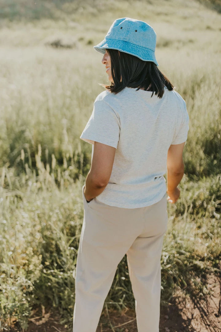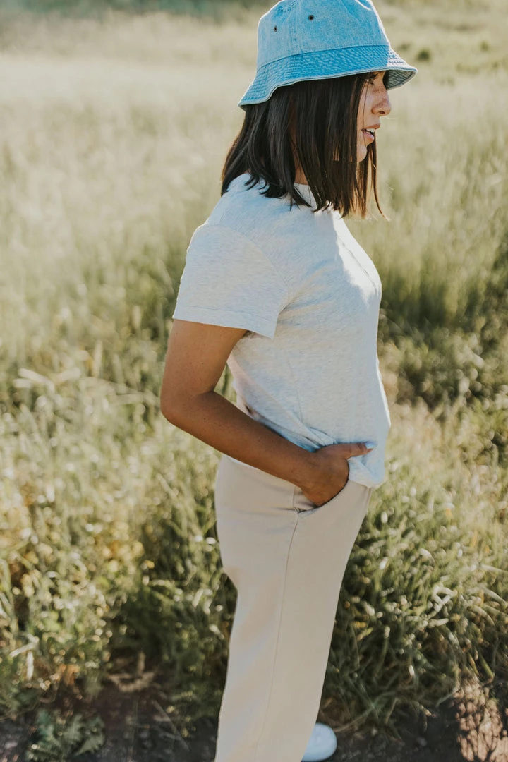 Model is size 4 & 5’4″ wearing Small. Paired with the Watts Tapered Pant in Khaki.