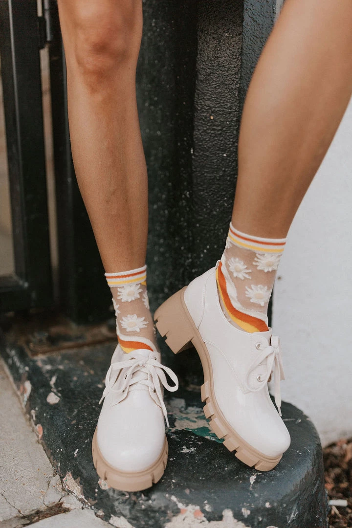 Patent leather chunky heel lace up oxford in bone.Â