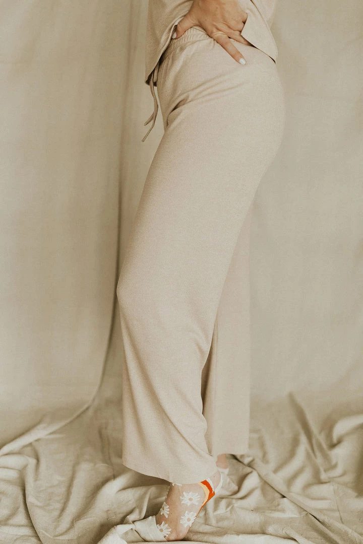 Ribbed wide leg pants. Elastic waist with tie. Pair perfectly with the Lounge Around Ribbed Top. Available in multiple colors.