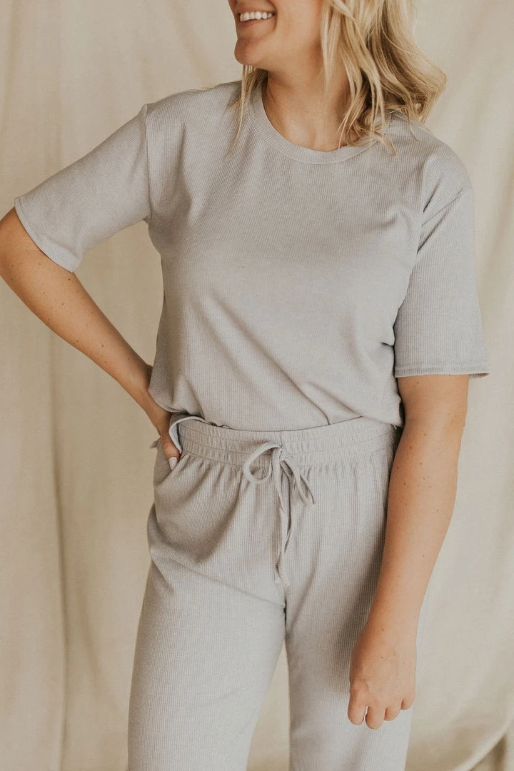 Ribbed tee. Soft with lots of stretch. Pair perfectly with the Lounge Around Ribbed Pant. Available in multiple colors.