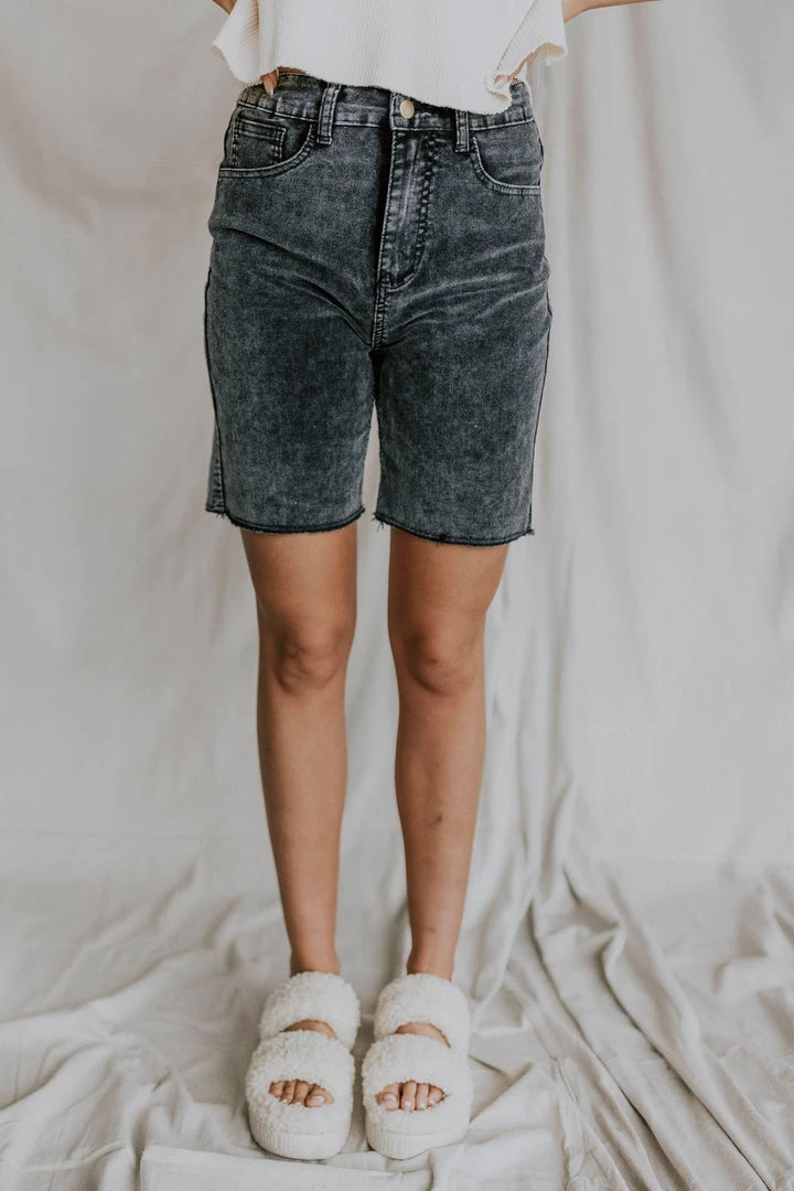 Soft stretchy shorts. Button front with zipper. Functional pockets. Acid washed
