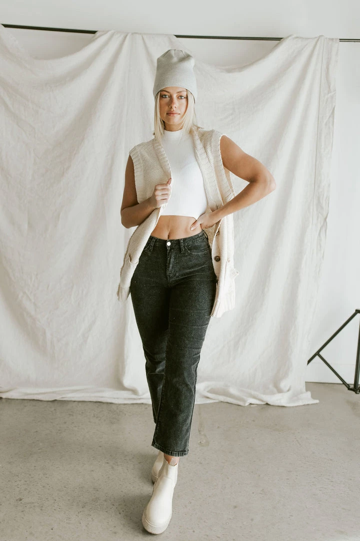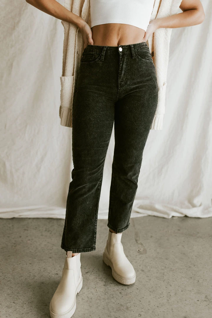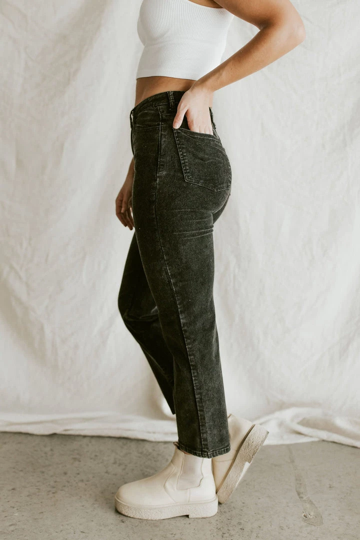 Soft stretchy pants. Button front with functional pockets. Acid washed. Some stretch in the fabric. Available in multiple colors.