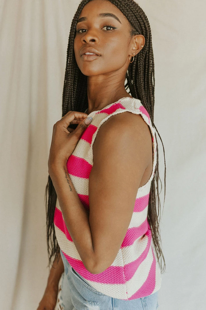 Scalloped hem sweater vest. Horizontal stripes. Soft with lots of stretch. Available in multiple colors.