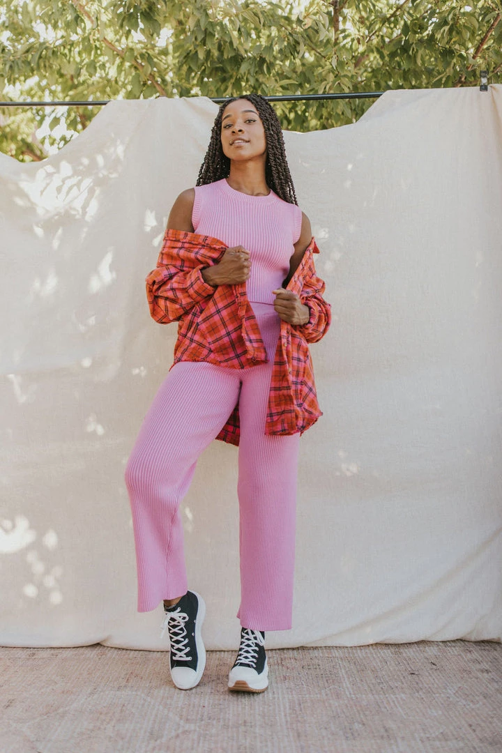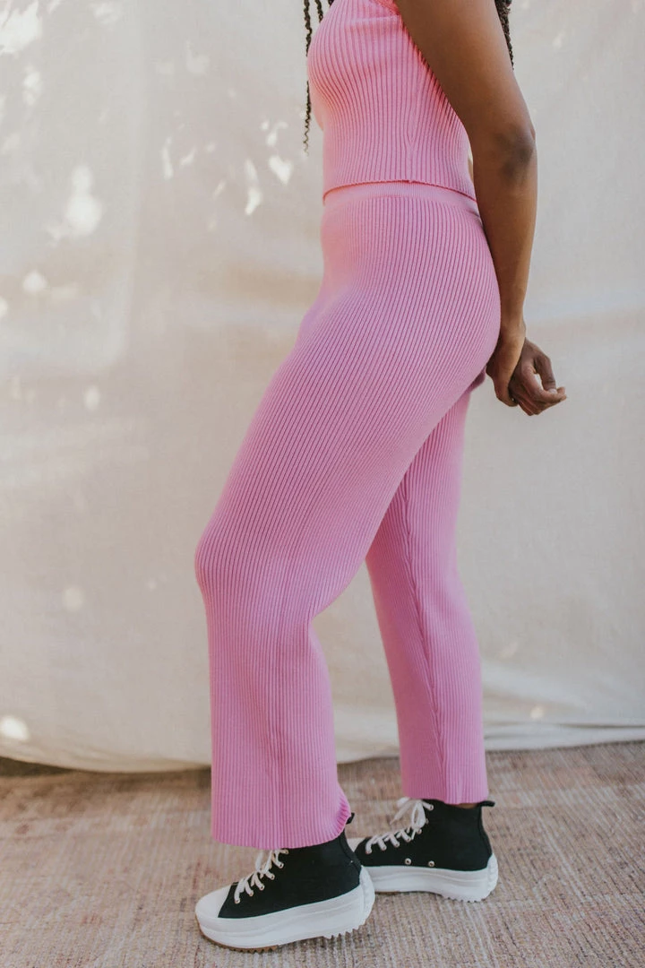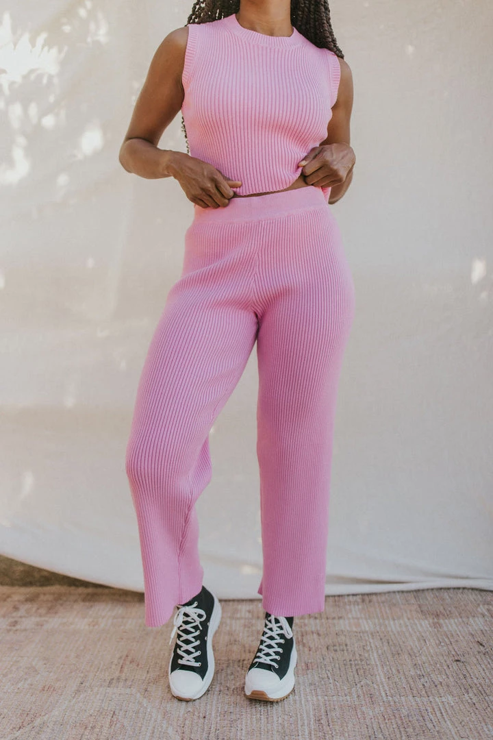 Ribbed sweater pants. Wide leg. Available in multiple colors. Pairs perfectly with the Adore You Sweater Tank in Bubblegum.