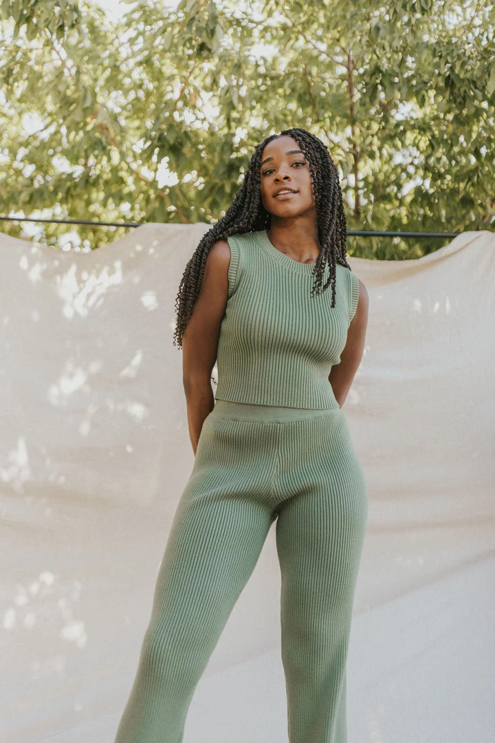Ribbed sweater pants. Wide leg. Available in multiple colors. Pairs perfectly with the Adore You Sweater Tank in Olive.
