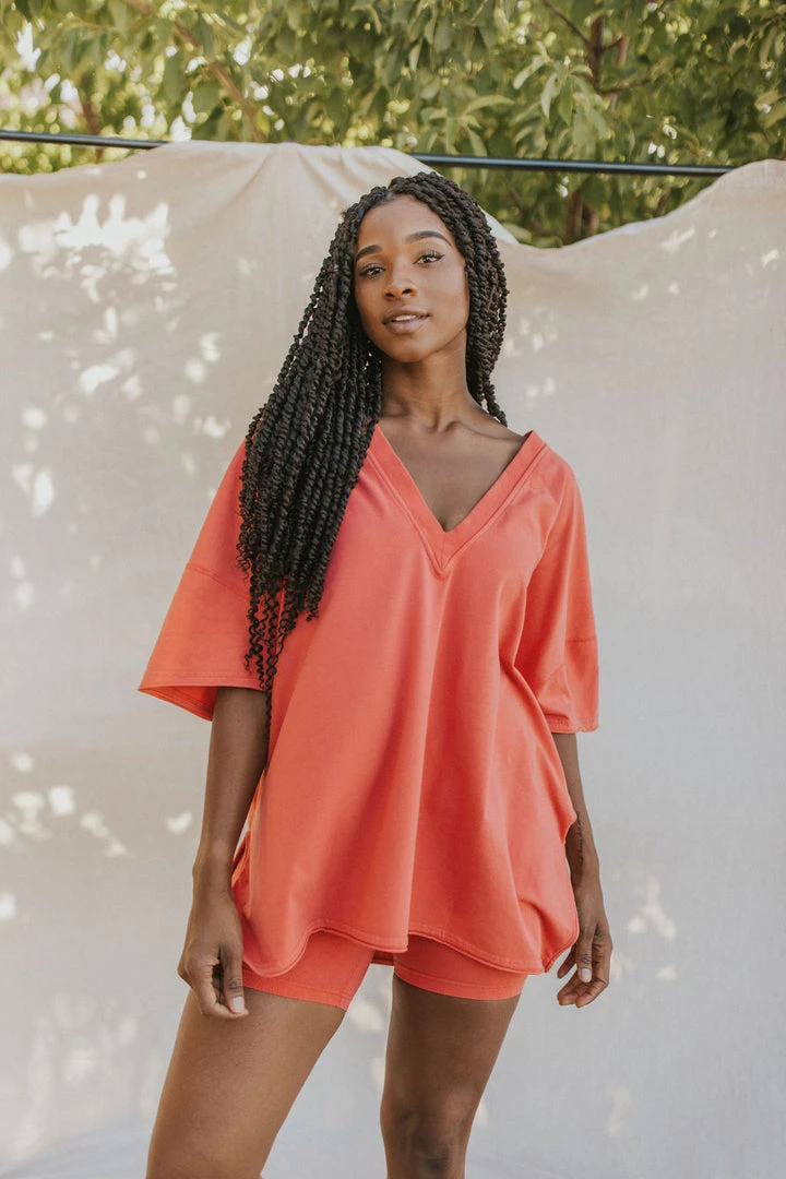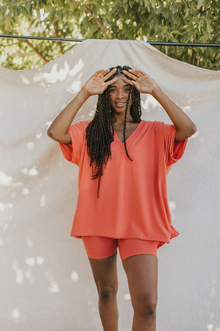 Get set to take on low-impact workouts and rest days in this breathable and lightweight two-piece set featuring an oversized tee and so comfy bike shorts. Two tone SET.
