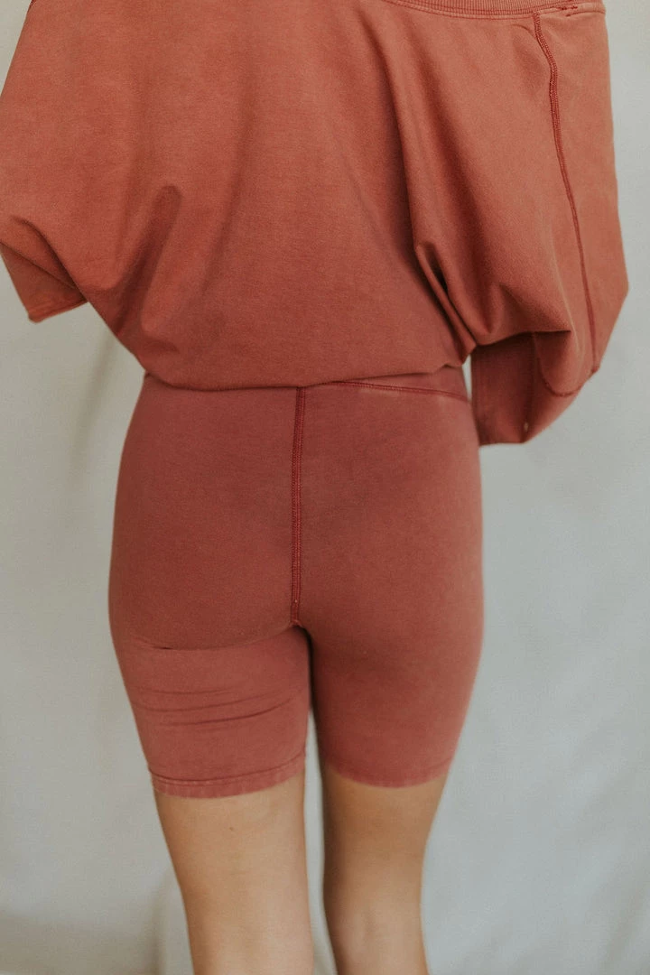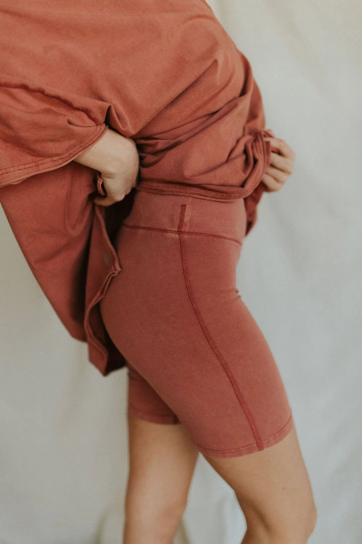 Get set to take on low-impact workouts and rest days in this breathable and lightweight two-piece set featuring an oversized tee and so comfy bike shorts. Two tone red sand SET.