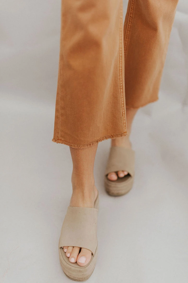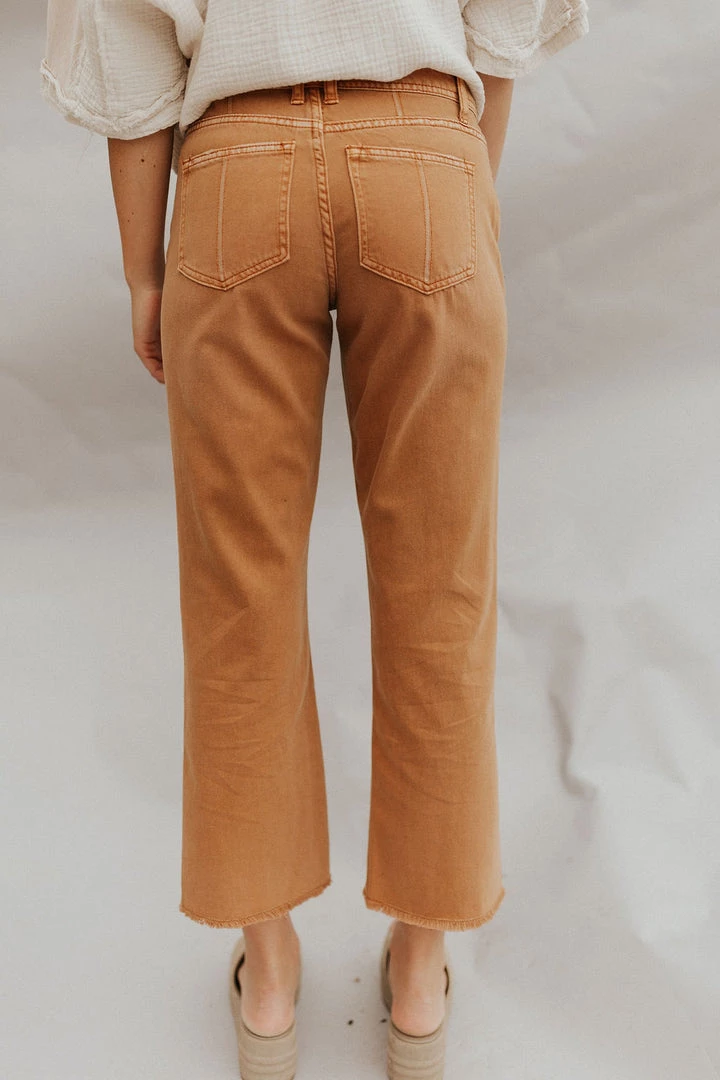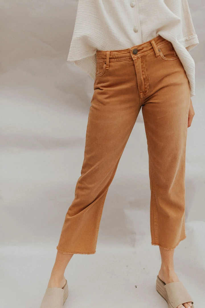 Raw hem cropped jeans. Soft washed look and feel. Straight wide leg. Mid-rise.