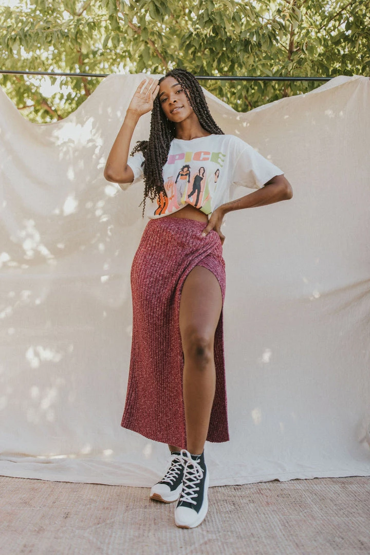 The perfect season-spanning staple, this midi features a rib-knit fabrication and wrap silhouette in an effortless pull-on design.