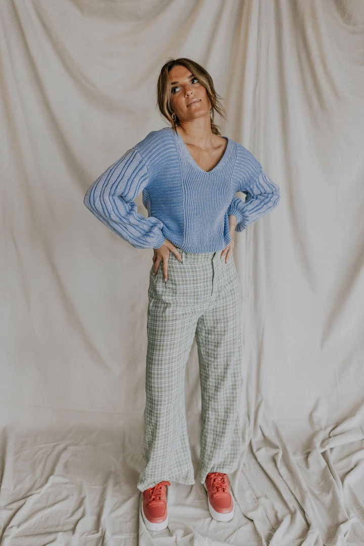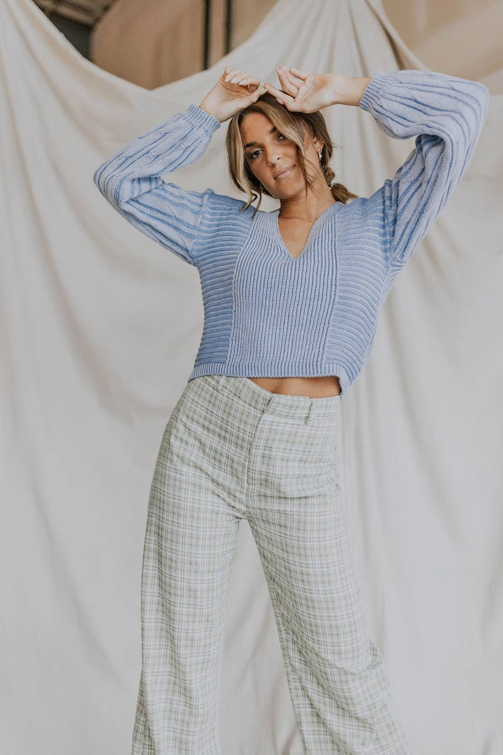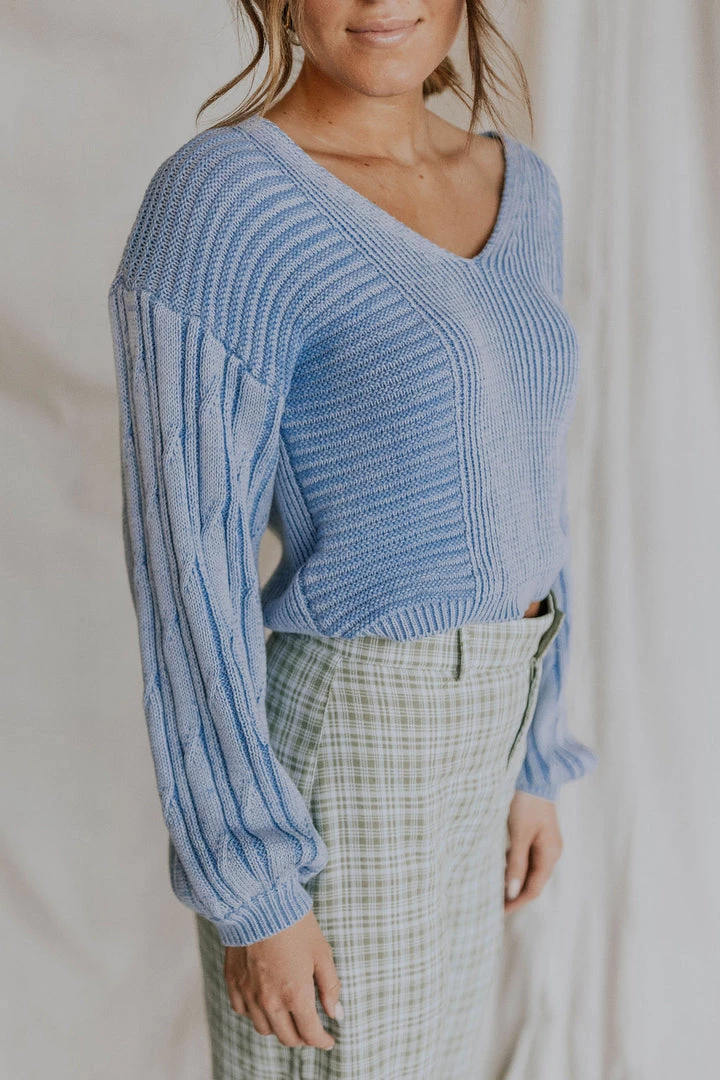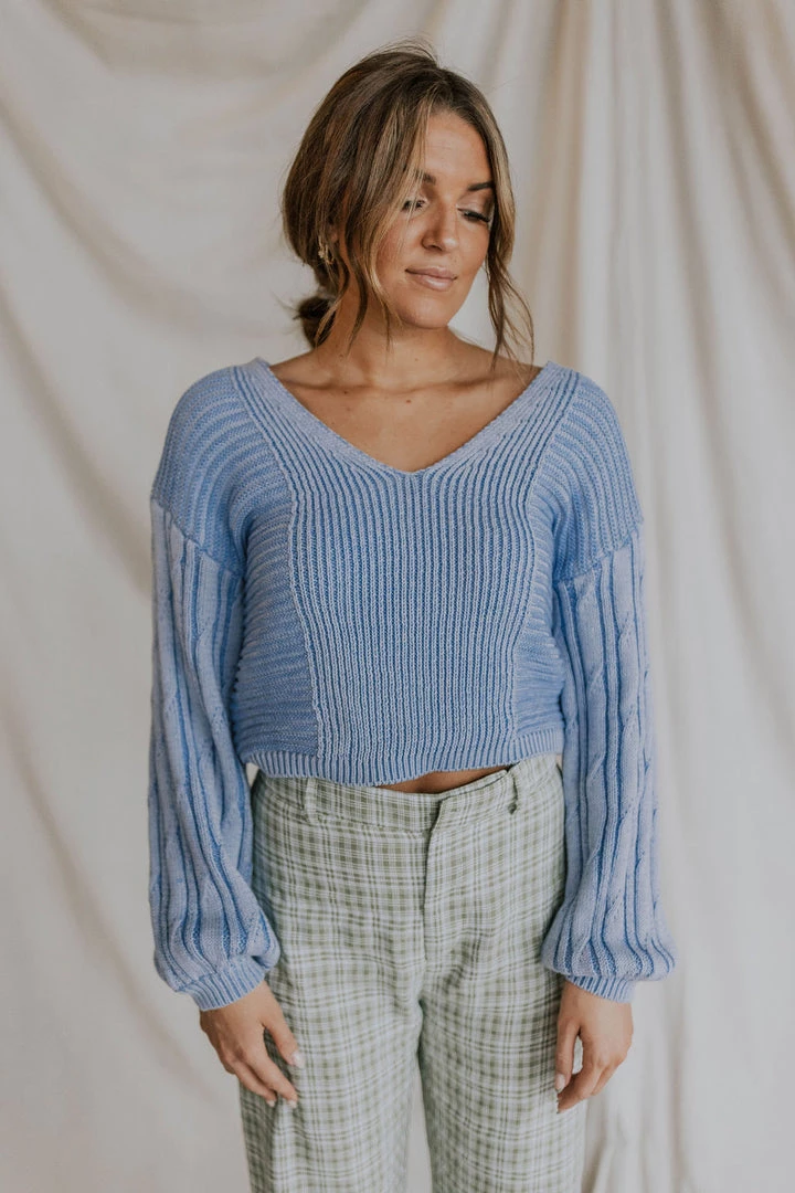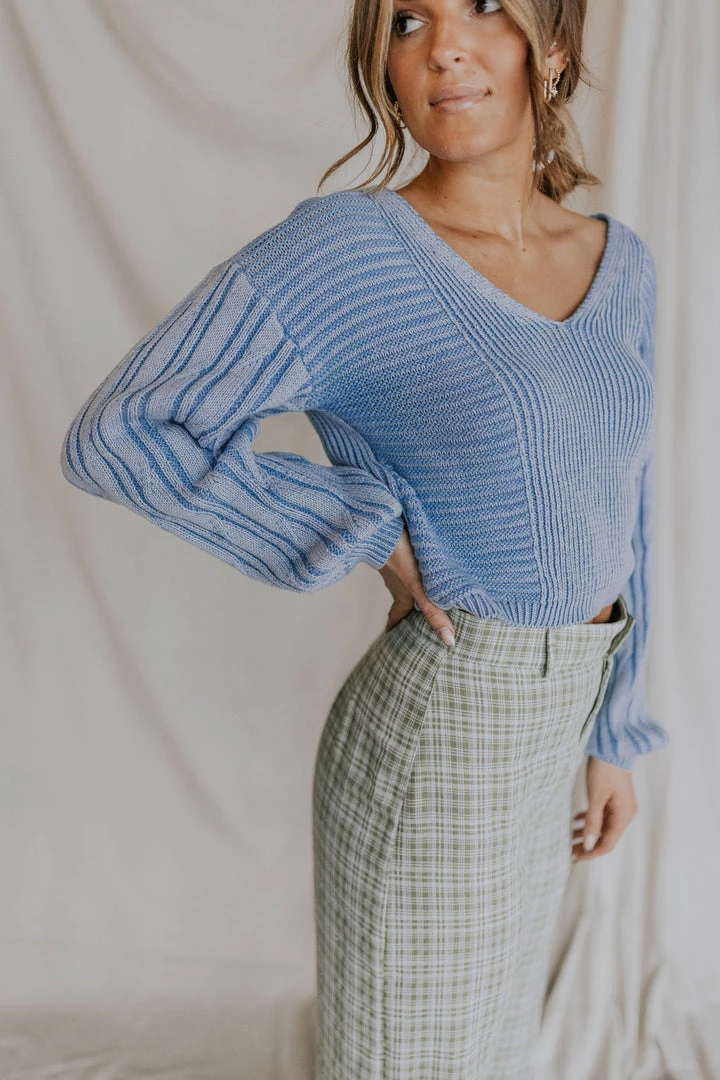 A true goes-with-anything essential, this timeless V-neck pullover is featured in a slouchy, cropped silhouette with exaggerated sleeves and contrast ribbed knit detailing for added dimension. MSRP $108