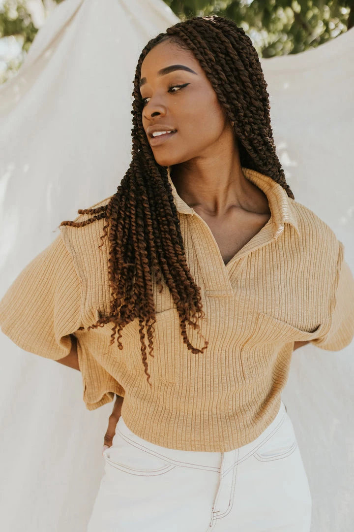 Ribbed top with soft washed look and feel. Double front pocket detail. Slightly cropped. Oversize slub fit. Available in multiple colors.