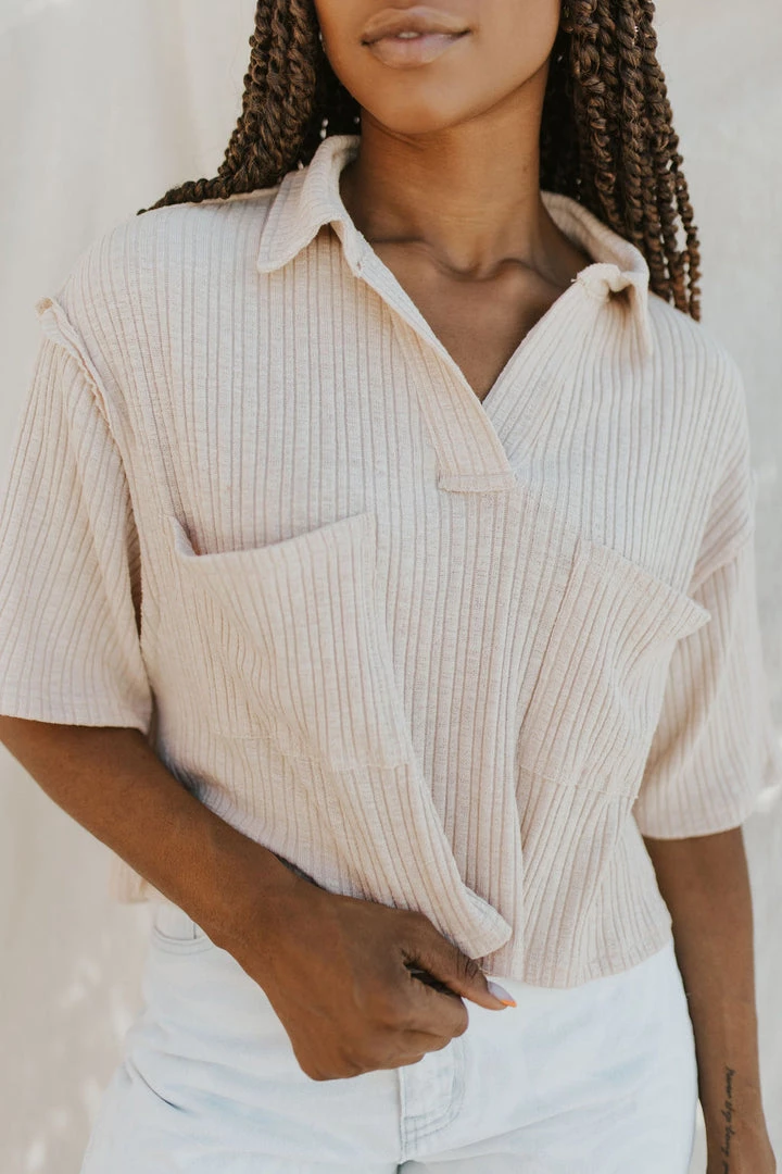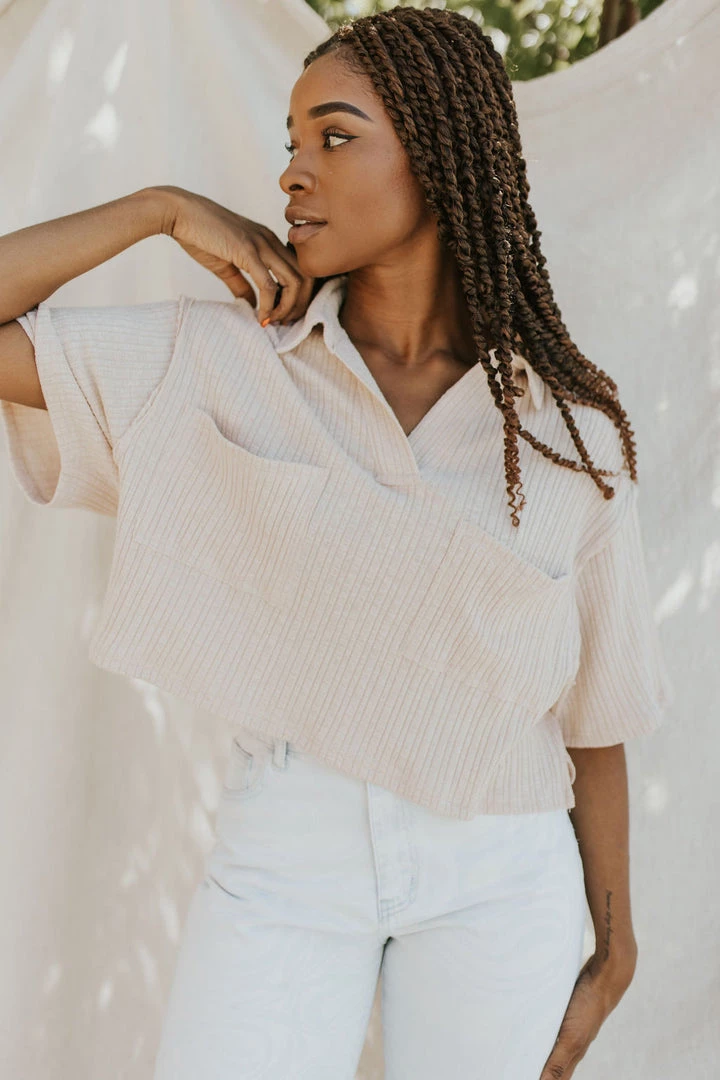 Ribbed top with soft washed look and feel. Double front pocket detail. Slightly cropped. Oversize slub fit. Available in multiple colors.