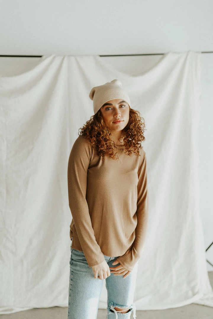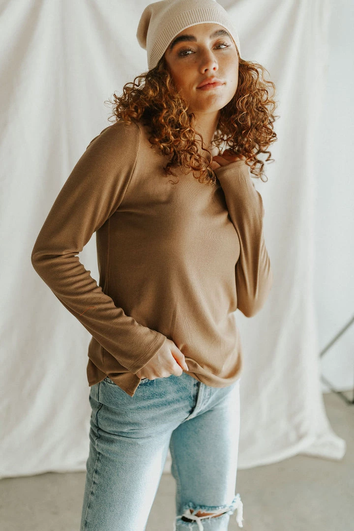 Long sleeve ribbed tee. Soft fabric with lots of stretch.